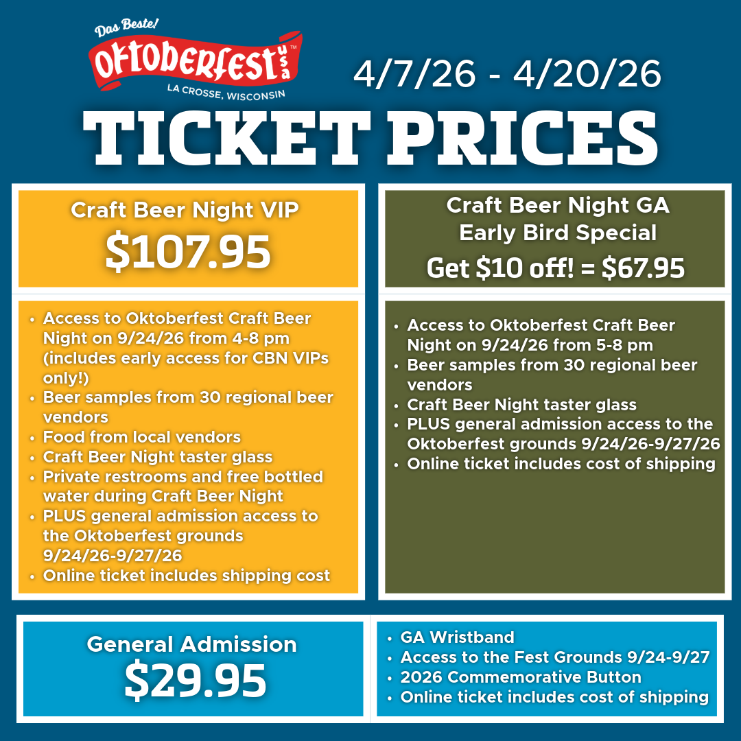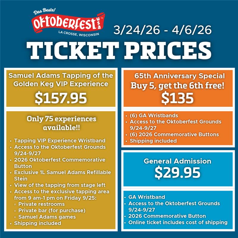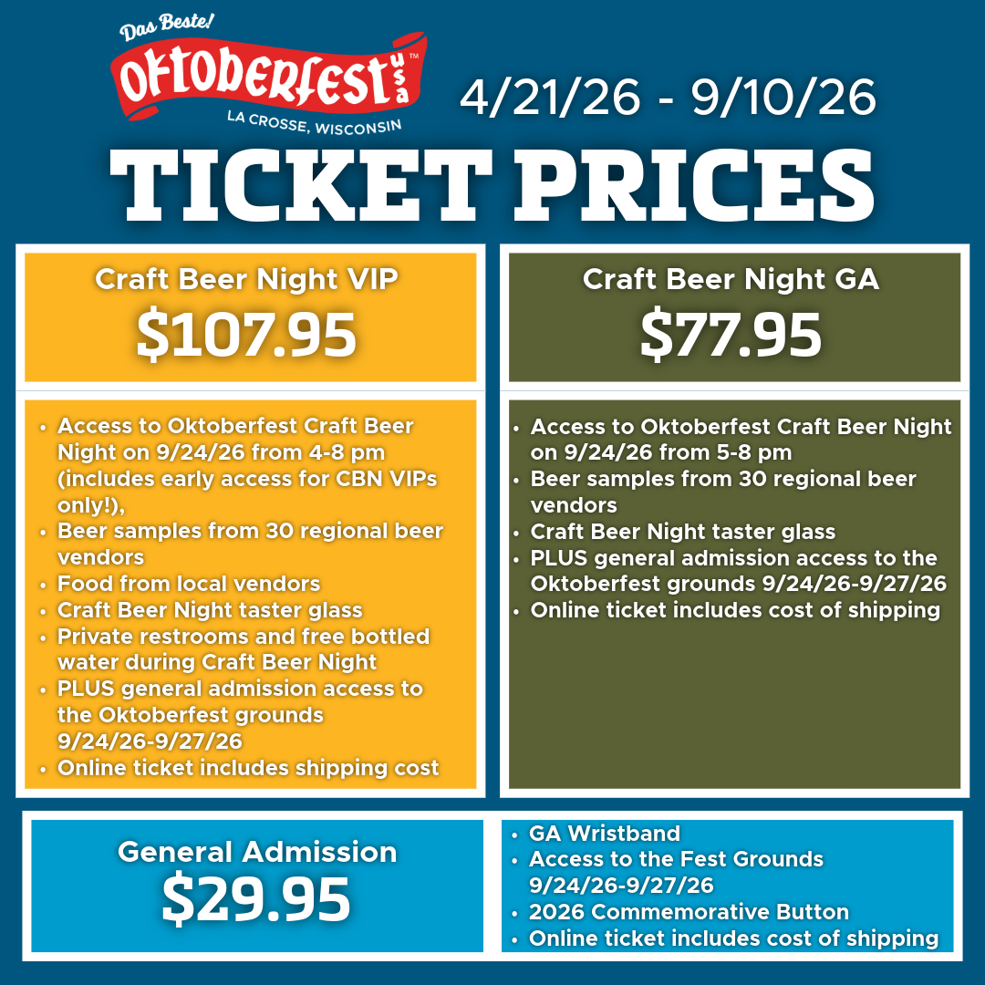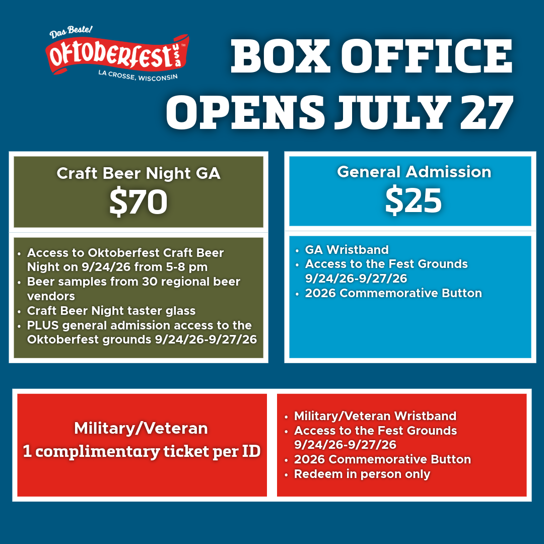 Purchase at the Oktoberfest Box Office starting July 27th
